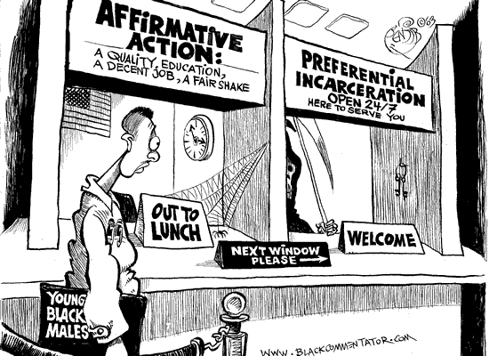 Molti specialisti scartano quello razziale come un fattore distintivo importante del tasso di carcerazioni in America. E’ vero che i neri finiscono in carcere molto più di altri gruppi degli Stati Uniti, ma questo non è un fenomeno particolarmente caratteristico. Anche in Canada, Inghilterra e Australia le minoranze sono presenti in modo sproporzionato nelle prigioni di quelle nazioni, e le percentuali sono simili o più alte di quelle degli Stati Uniti.