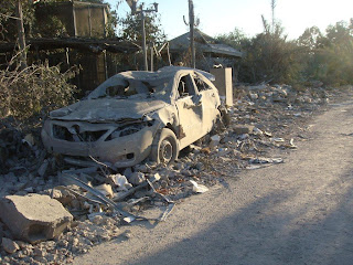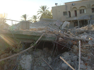 Tripoli (LVO[2]): JoAnne Moriarty fa parte di una delle numerose missioni per la pace che si sono recate in Libia per rendere conto della realtà sul posto. Ella ha scattato delle foto nella città di Sorman, vicino Sabratha, di questa abitazione famigliare che è stata bombardata dalla NATO lunedì 20 giugno 2011 alle 2:30 del mattino.
