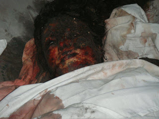 Per favore, rendetevi conto che queste sono solo le foto di qualcuna delle persone uccise, loro hanno insistito che noi scattassimo delle foto per inviarle in America e al mondo. Non sono una giornalista, non sono un medico, nessuna di queste persone è mio marito, siamo dei civili in missione di pace in Libia di fronte a un fatto sconcertante. Non ero mai andata in una morgue, non avevo mai visto dei cadaveri, è stato molto difficile per noi. Quello di cui sono stata testimone ieri resterà con me per sempre.
