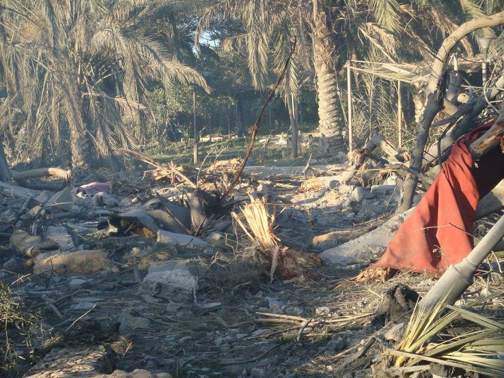 Siamo stati testimoni che si trattava di un’abitazione famigliare, non abbiamo visto nel settore circostante o nella zona esterna nessun tipo di presenza militare. La famiglia aveva un campo da tennis che è stato bombardato due volte, un piccolo recinto con qualche animale di cui diversi sono stati feriti e uccisi. Abbiamo visto una piccola clinica dentistica all’esterno, vicino alla fattoria, che è stata molto danneggiata. C’era una grande Moschea, a fianco e lungo la via della Moschea c’era un ufficio postale e una piccola zona commerciale con qualche appartamento. Questo settore è stato colpito e distrutto uccidendo 3 persone del Sudan. C’è qualche foto inclusa.