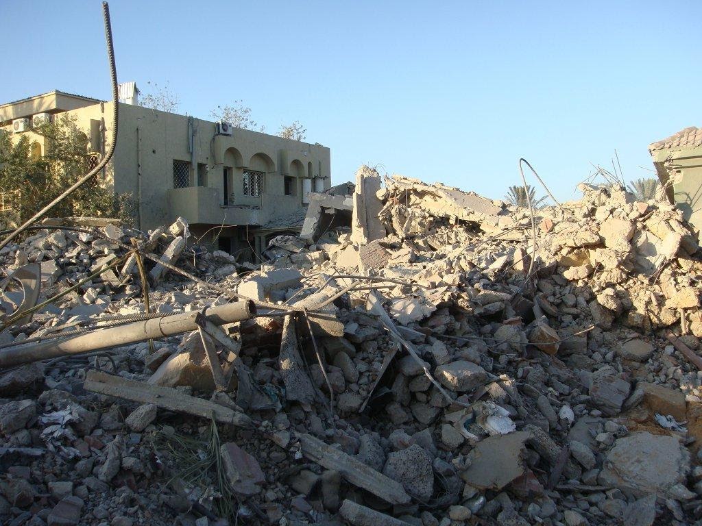 Tripoli (LVO[2]): JoAnne Moriarty fa parte di una delle numerose missioni per la pace che si sono recate in Libia per rendere conto della realtà sul posto. Ella ha scattato delle foto nella città di Sorman, vicino Sabratha, di questa abitazione famigliare che è stata bombardata dalla NATO lunedì 20 giugno 2011 alle 2:30 del mattino.